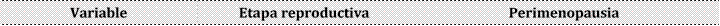 Tabla 1. Comparacio´n entre etapa reproductiva vs etapa perimenopa´usica