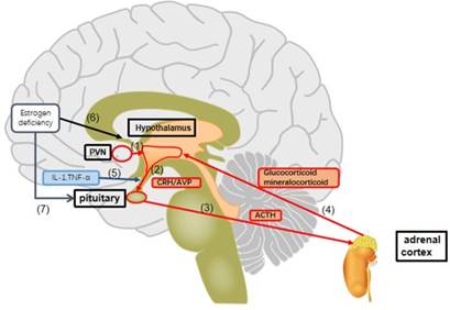 Figura 2. Alteracio´n del eje hipota´lamo–hipo´fisis– adrenal inducida por la deficiencia estroge´nica (5)