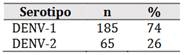 Tabla 3. Serotipos del virus del dengue identificados por RT-PCR (n=250), en el departamento de Tumbes, 2024.