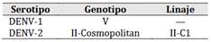 (20,24,27). En conjunto, estos hallazgos reflejan la tendencia nacional de predominio de DENV-1 y DENV-2, con circulacio´n creciente de los genotipos