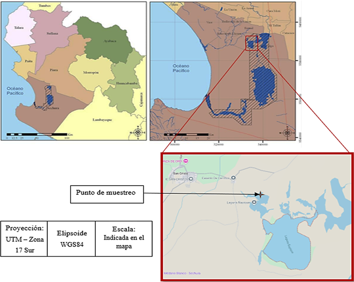 Figura 1. Ubicación geográfica de la laguna Ñapique, distrito Cristo nos Valga, provincia de Sechura.