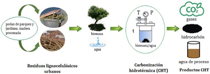 Palabras clave: residuos verdes; residuos lignocelulósicos urbanos; carbonización hidrotérmica; hidrocarbón; sustentabilidad.
