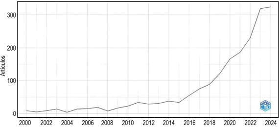 Se seleccionaron 100 artículos de la base de datos Scopus para su análisis, la mayoría de estas investigaciones se publicaron en 2023 (35 artículos), seguido de 2024 con 23 artículos y 2021 con 22 artículos, como se observa en la Tabla 3.