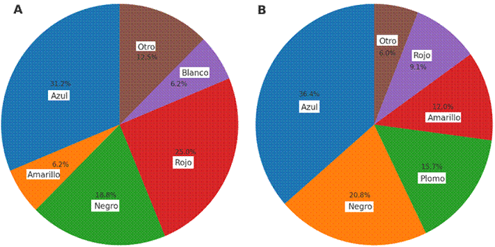 Azul (77%), Plomo (15%), Rosado (8%) |