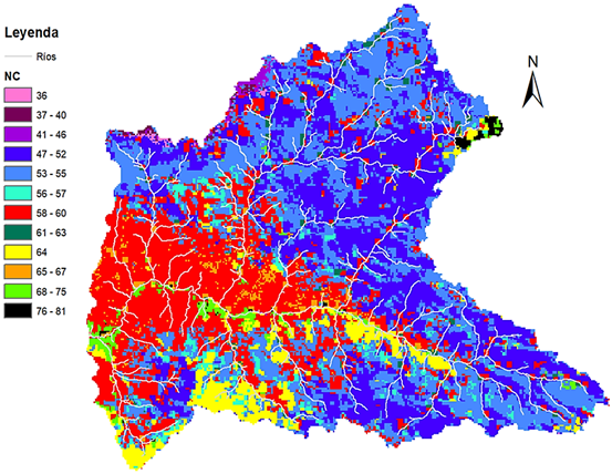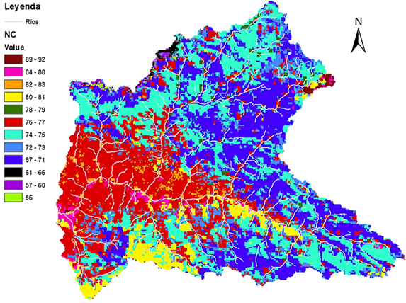 Figura 2. Mapa de distribución de valores de NC, en base al método USDA y SIG.